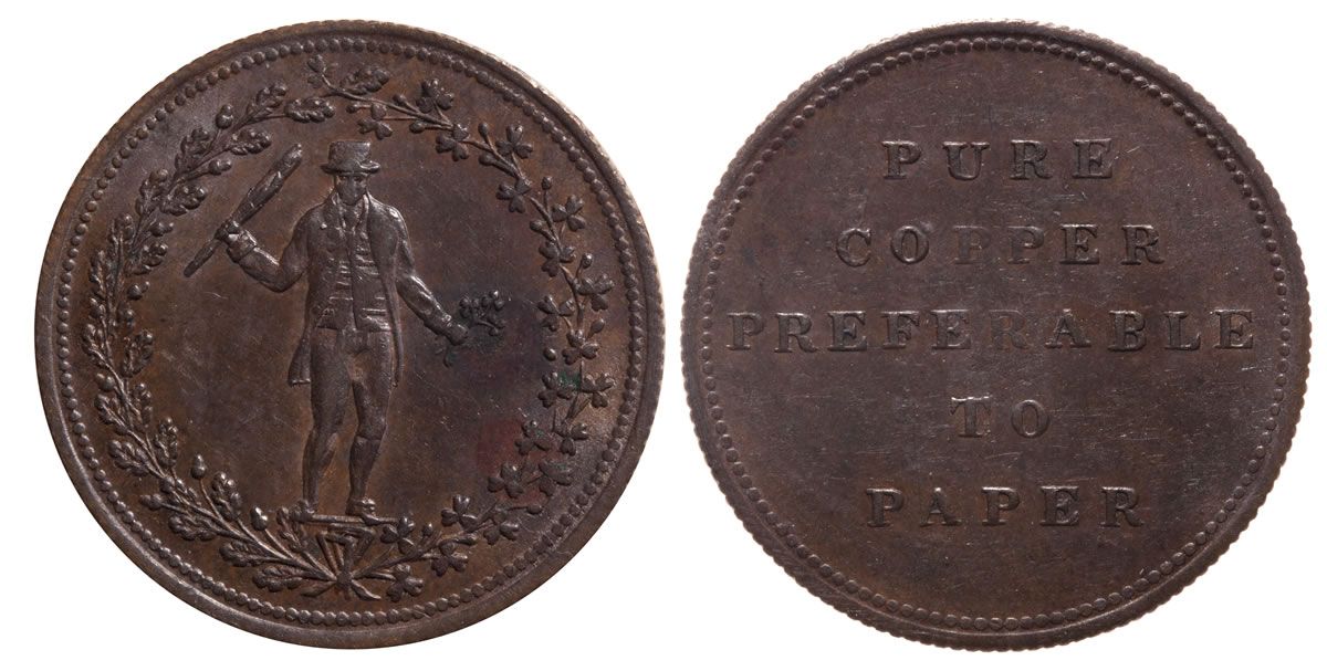 AM-4. "Pure Copper Preferable To Paper" – Halfpenny. ICCS graded About Unc-55.
