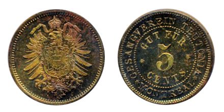 Breton-589. Gesangverein. 5 Cents. Arms. Brass. ICCS Mint State-65.