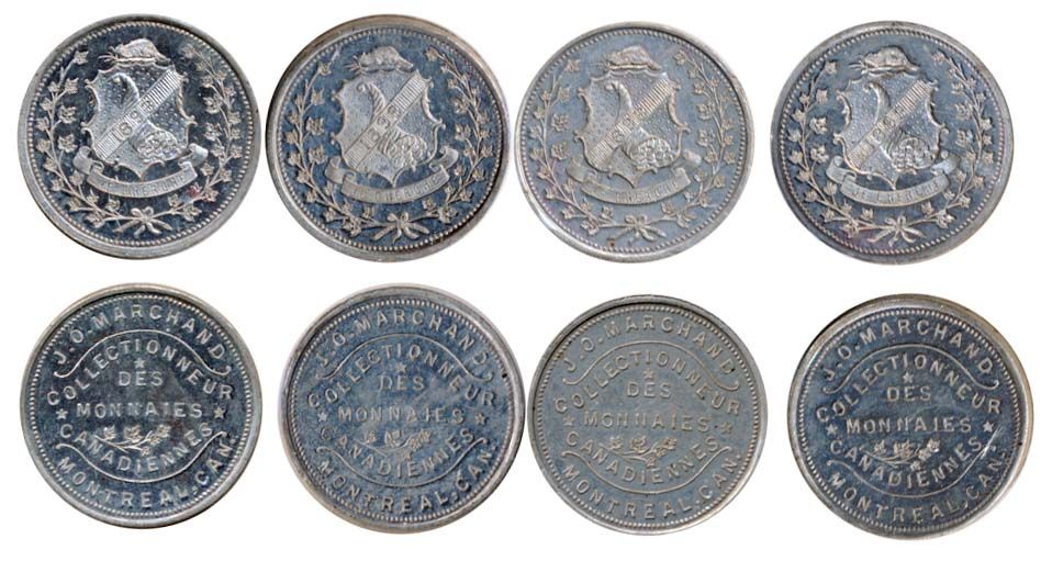 J.O. Marchand. Collectioneur. 1892. White metal. Lot of four (4) tokens, all AU or better.