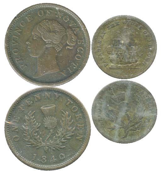 NS-2C2. 1d. 1840. Breton-896. NS-16A1. J. Brown. Lot of two (2) tokens, both Very Fine+.