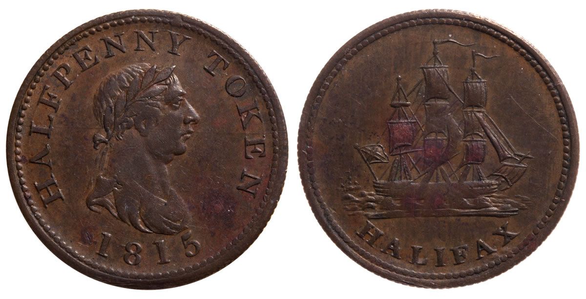 NS-27A3. Halifax – 1815 Halfpenny token; Hair, ↑↑. ICCS graded About Unc-50.