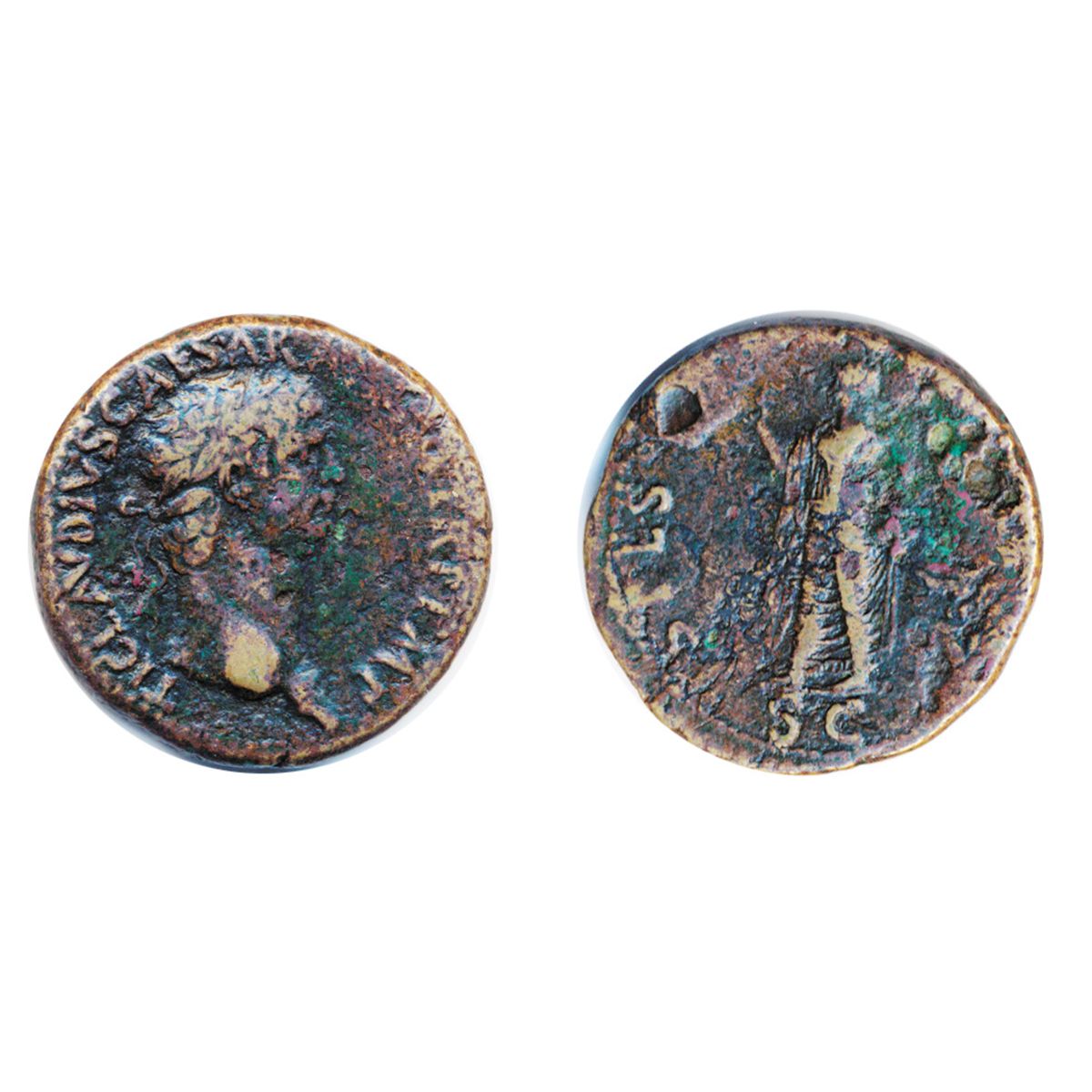 CLAUDIUS, AD 41-54. AE (copper alloy) Sestertius minted at Rome, c. AD 41-50. Obv: Laureate head rig