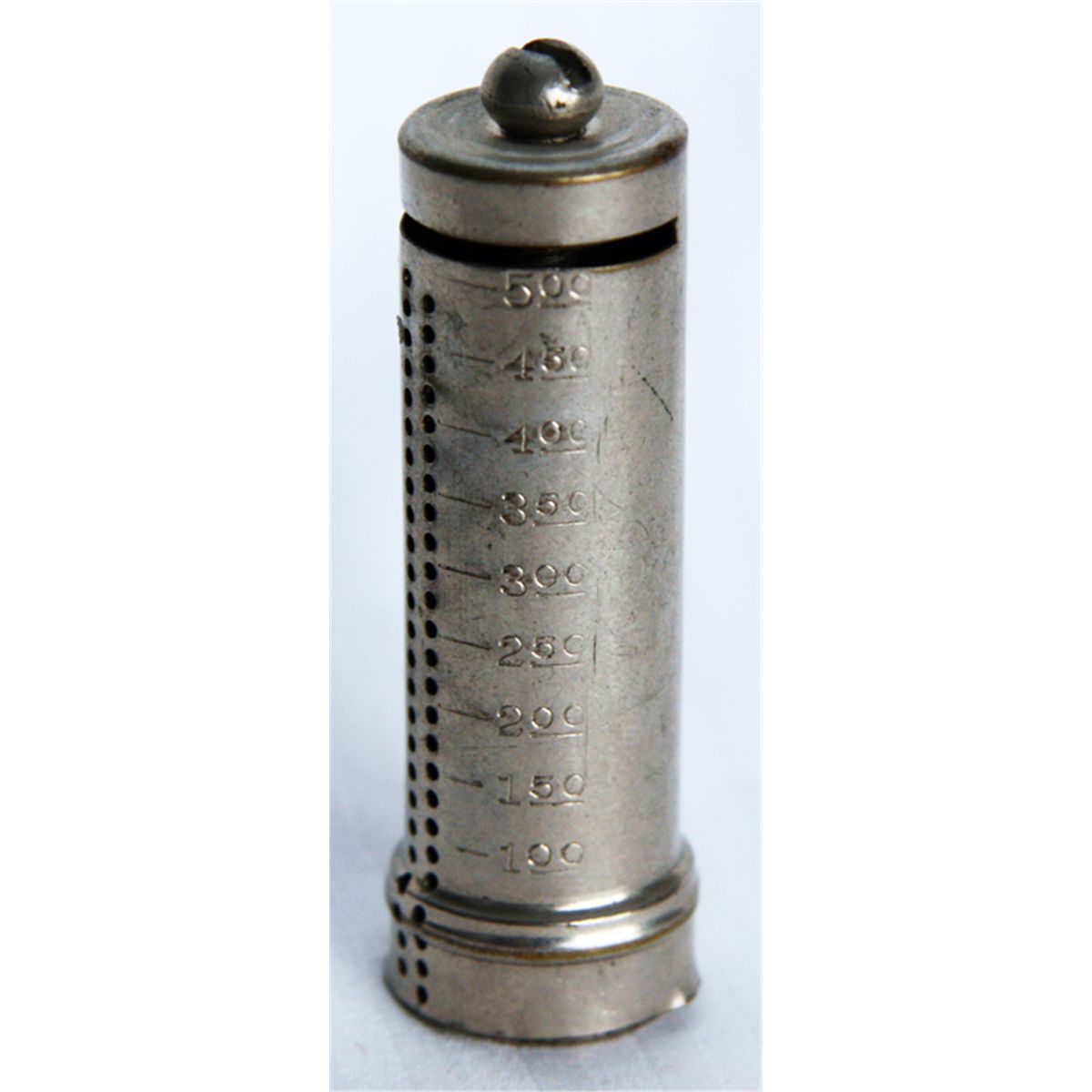 COIN TUBE. A Ten Cents coin tube. ‘THE B. & R. M’FG CO, NEW YORK. 2cm x 6cm high. No key lock, serial number or patent information. Nickel-plated finish. VF.