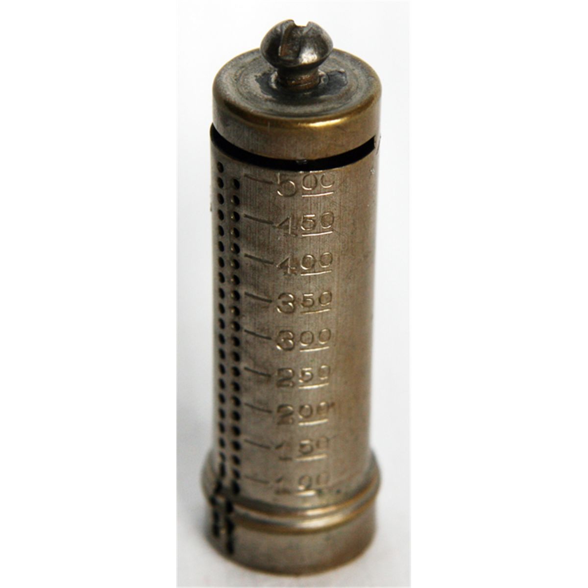 COIN TUBE. A Ten Cents coin tube. ‘THE B. & R. M’FG CO, NEW YORK. 2cm x 6cm high. No key lock, serial number or patent information. Nickel-plated finish. VF.