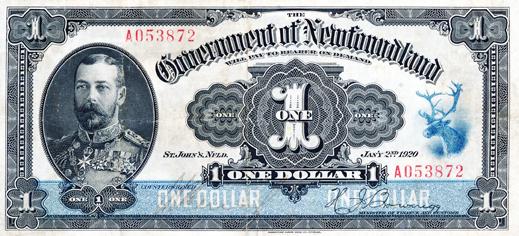 GOVERNMENT OF NEWFOUNDLAND. $1.00. Jan. 2, 1920. NF-12d. Renouf-Browning. No. A053872. A bright and strong Fine.