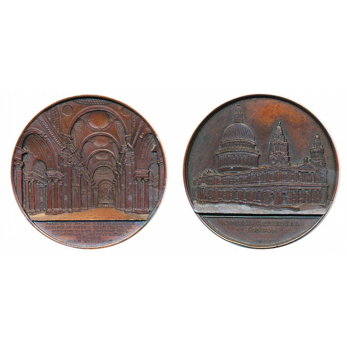 GREAT BRITAIN: St. Paul’s Cathedral London (1849), detailed exterior view / 3D interior view, by J Wiener, 60 mm, BHM 2363, AE, AU.