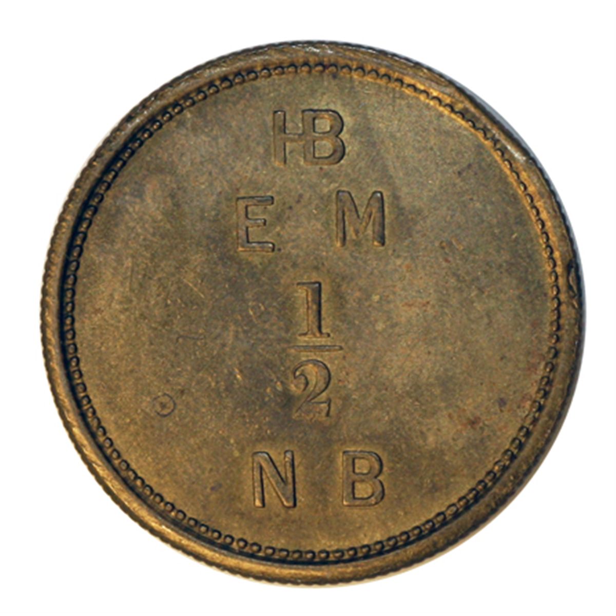 HUDSON’S BAY COMPANY. East Main District. 1/2 NB (Made Beaver). Breton-927. Gingras-220b. Brass. Unpunched. EF.