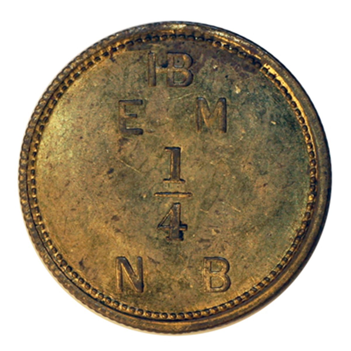 HUDSON’S BAY COMPANY. East Main District. 1/4 NB (Made Beaver). Breton-928. Gingras-220a. Brass. Unpunched. AU, with luster.