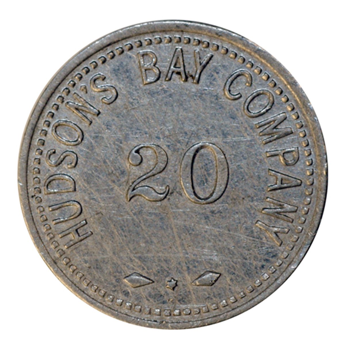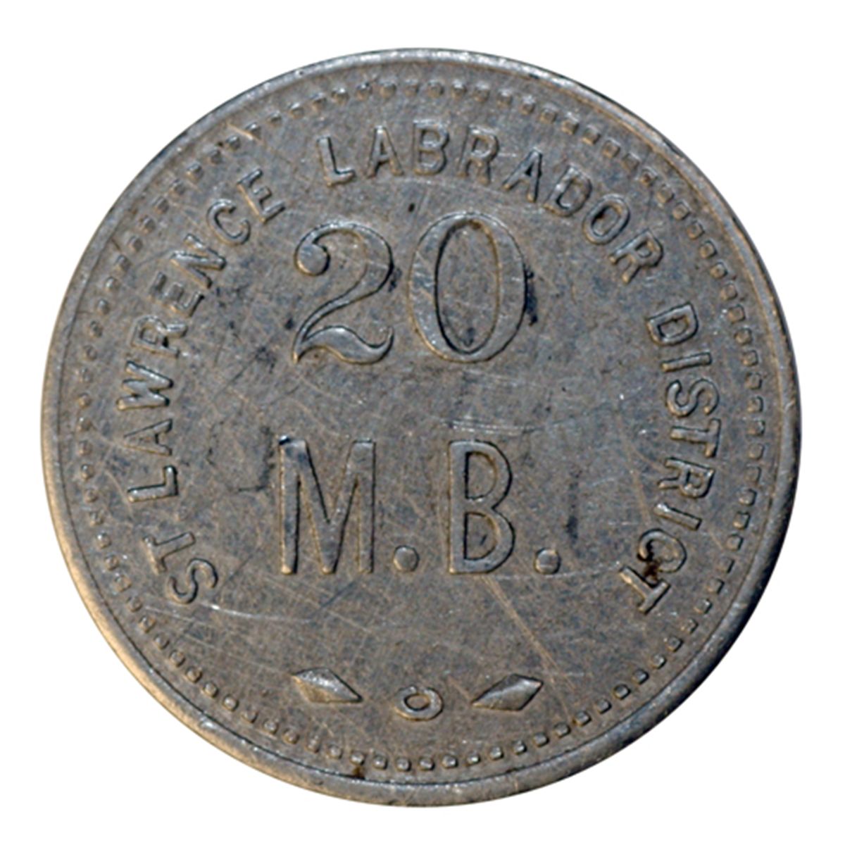 HUDSON’S BAY COMPANY. St. Lawrence Labrador District. 20 MB token. Gingras-260g. Alum. Large lettering. 32mm. EF.