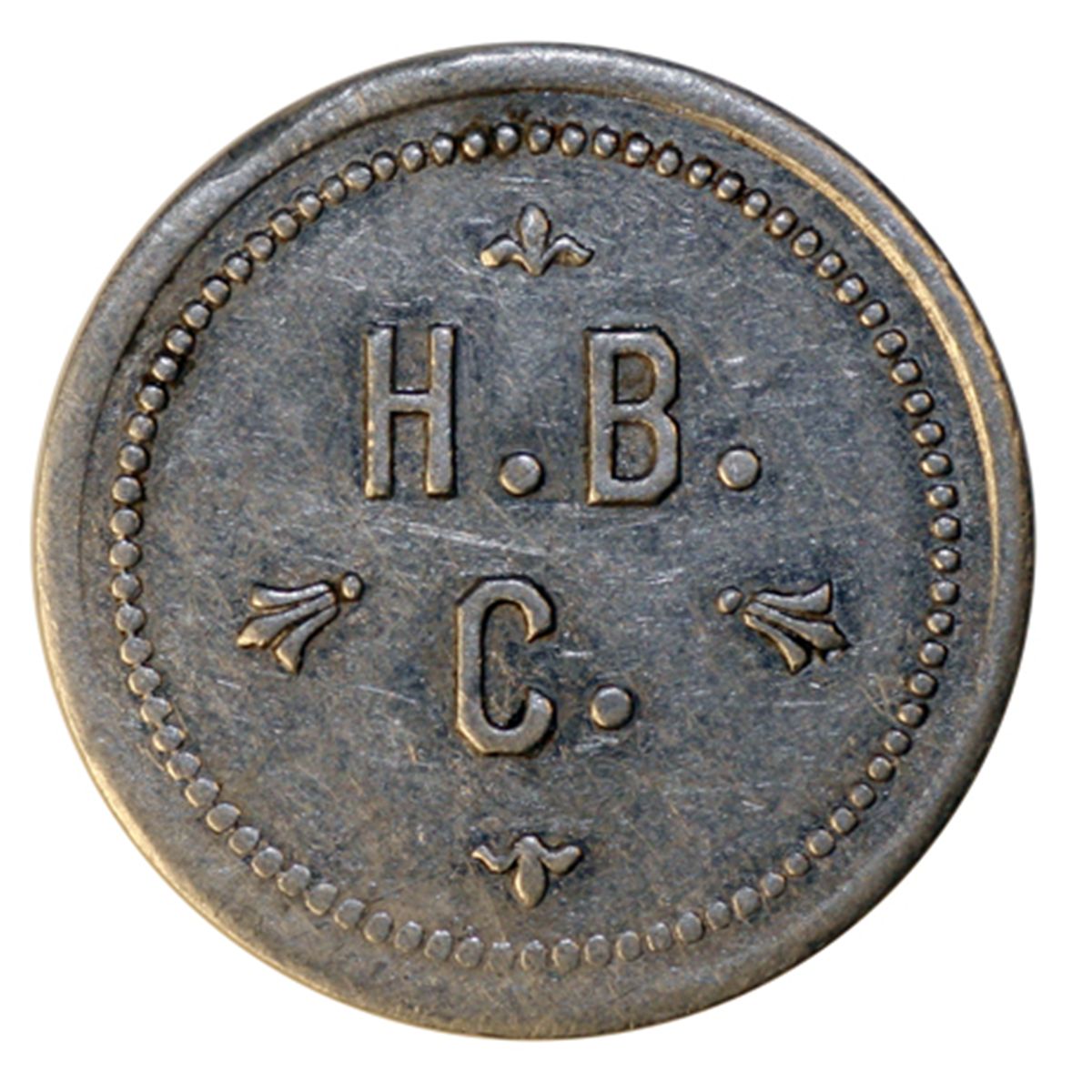 HUDSON’S BAY COMPANY. Ungava Bay District. 5 M.B./H.B./C. Alum. 29mm. Gingras-245(a). R-10. Unlisted by Gingras, and of the highest rarity. VF”.