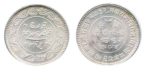 INDIA. Kutch. 5 Kori. (1936-41). Y-75. Choice Unc.