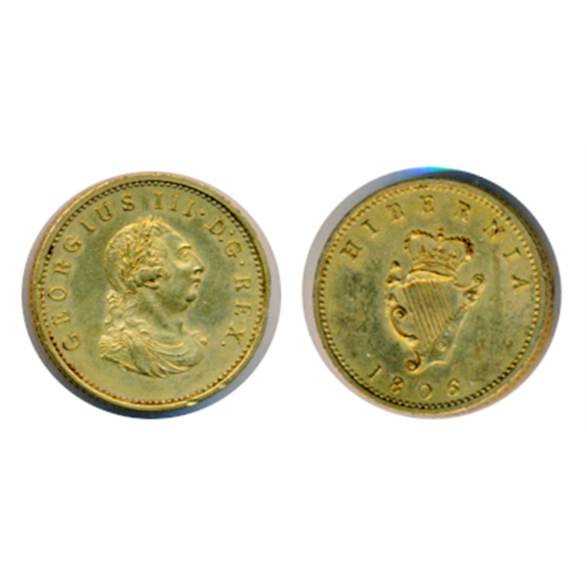 IRELAND. Farthing. 1806. KM#146.2a. Copper Gilt. AU.