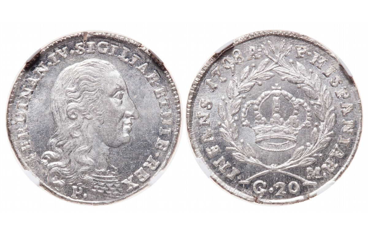 Italian States. 20 Grana. 1798 P/A P. NGC graded Very Choice Uncirculated-64. Naples & Sicily.
