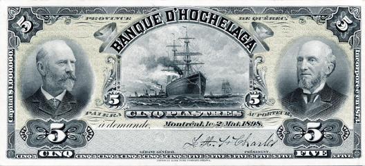 LA BANQUE D'HOCHELAGA. $5.00. 2 Mai, 1898. CH-360-18-02Pa. Full colour Face and Back Proofs, on