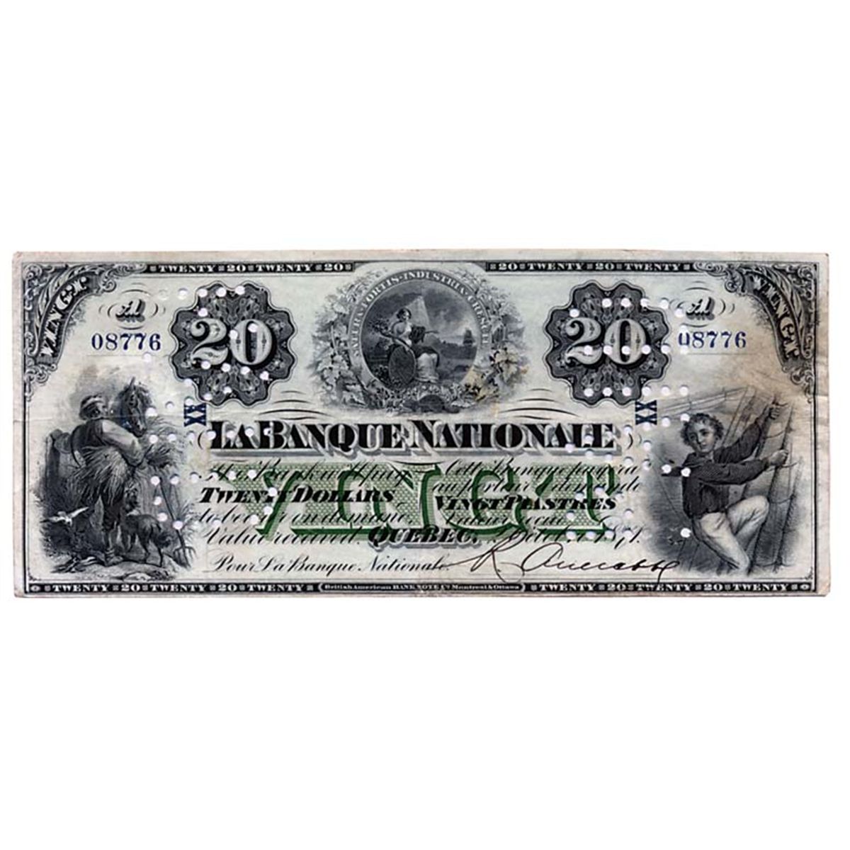 LA BANQUE NATIONALE. $20.00. 2 October, 1871. CH-510-12-08a. No. 08776/A. Cancelled. ‘XX…XX’ overprint. Extra Fine.