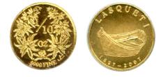 Lasqueti Mint. 1997-2007. Obv: LASQUETI. Dory. Rev. 1/10 oz. .9999 Fine. ‘Herbs’. Gold. 16mm. CCCS graded MS-65. Heavy Cameo. Hard plastic holder. Reflective reverse field.