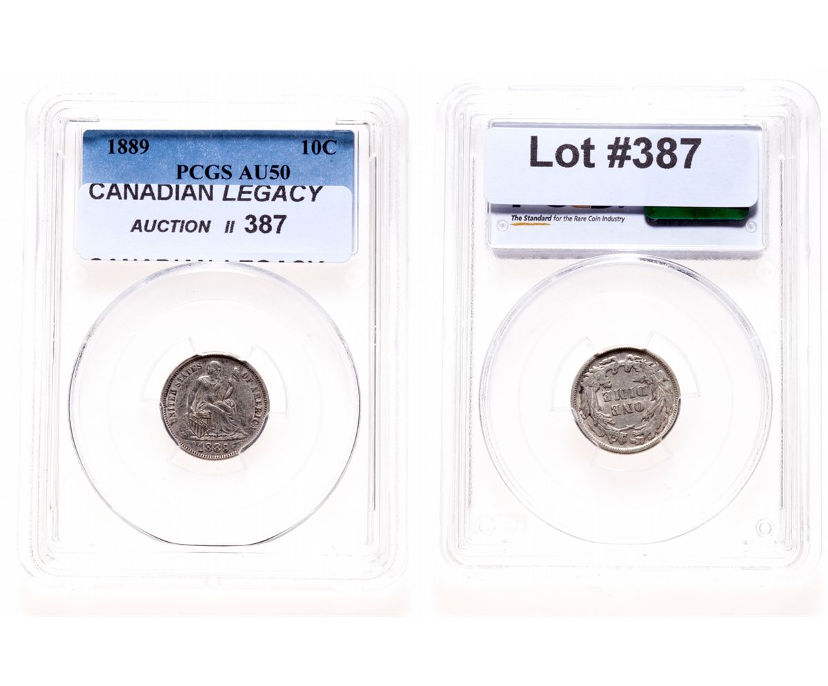 Liberty Seated Ten Cents. 1887. PCGS graded AU-50.