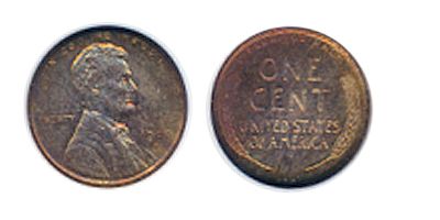 Lincoln Cent. 1909-S. VDB. ANACS graded Mint State-64. Red-Brown. 50% red lustre remaining.