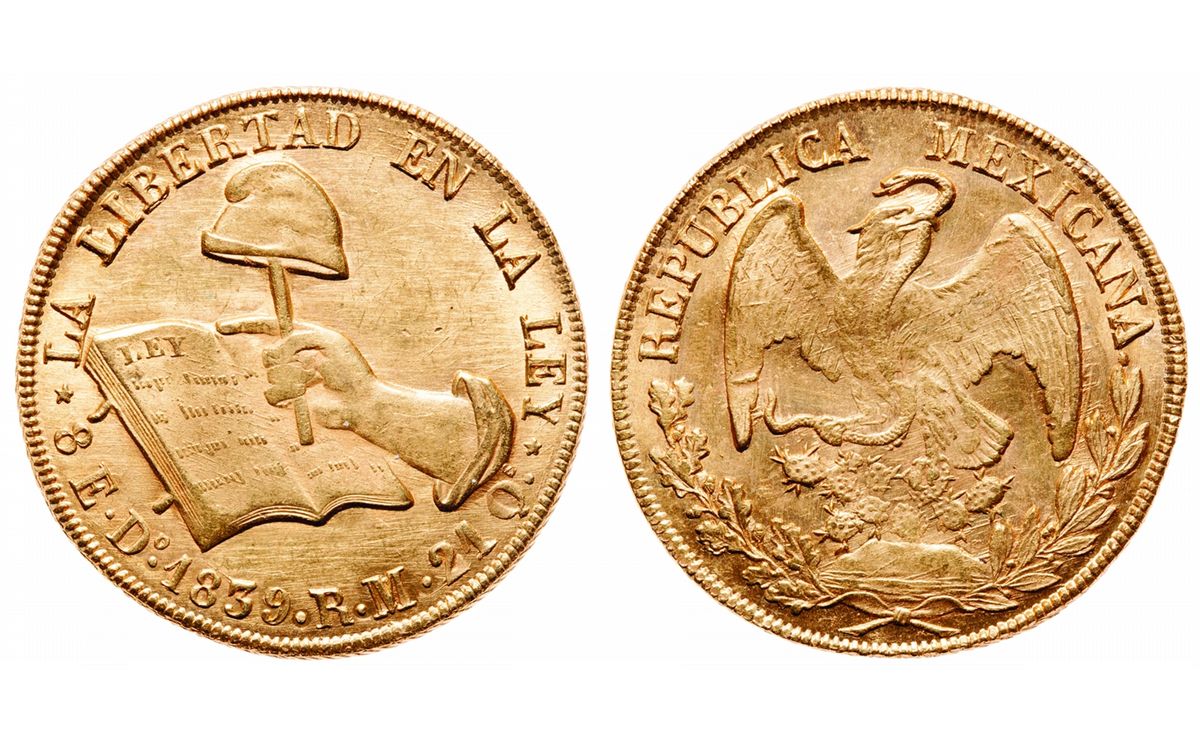 MEXICO. 8 Escudos. 1839 DO RM. KM#383.3. Durango Mint. About Uncirculated. From the Rosedale Collection.
