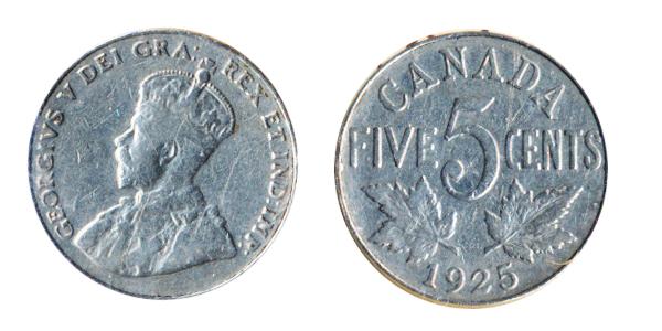 ONE CENT.  1891. Small Leaves, Small Date. Obverse port. #3.  ICCS Very Fine-30;  FIVE CENTS.  1925.