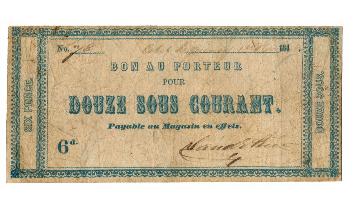 PRICE BROTHERS & CO. Saguenay District, C.E. Six Pence. (12 Sous). Nov. 1, 1848. QC350-10-06a. No. 78. VG/Fine.