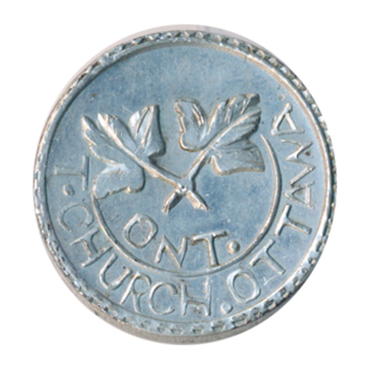 T. Church Token. Bow. 4-28. White metal. Plain edge. Thick. 7.7 gms. UNC.