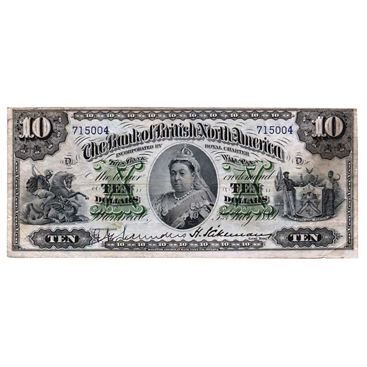 THE BANK OF BRITISH NORTH AMERICA. $10.00. July 3, 1889. CH-55-22-08. No. 715004/D. PMG graded Very Fine-25. The finest example graded by PMG.