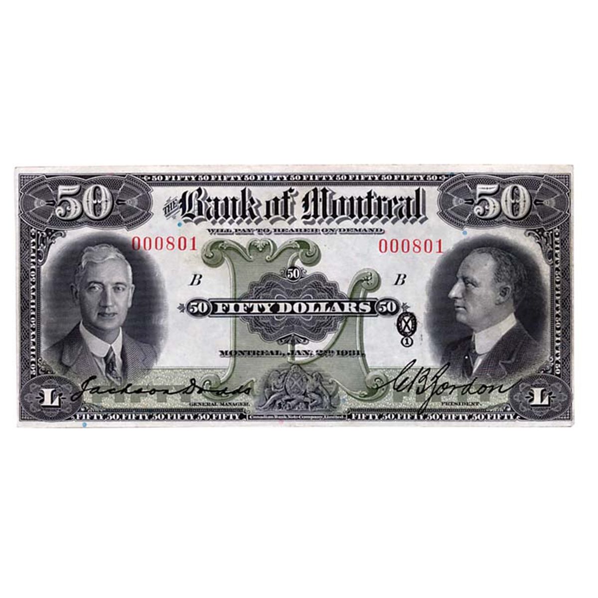 THE BANK OF MONTREAL. $50.00. Jan. 2, 1931. CH-505-58-08. No. 000801. PCGS graded AU-50.