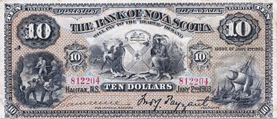 THE BANK OF NOVA SCOTIA. $10.00. Jan. 2, 1903. CH-550-18-08. No. 812204/A. PMG graded Fine-15.