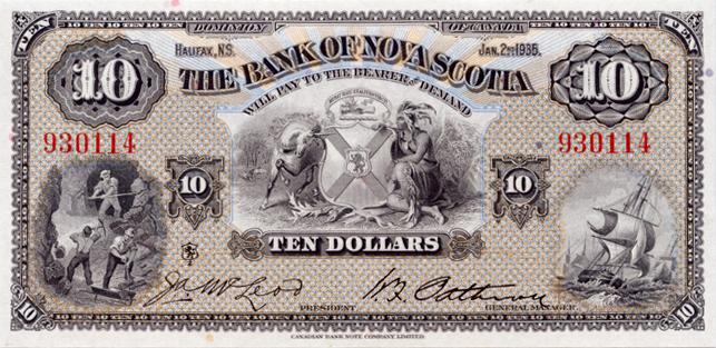 THE BANK OF NOVA SCOTIA. $10.00. Jan. 2, 1935. CH-550-36-04. No. 930114. PMG graded Gem Unc-66. Exceptional Paper Quality.