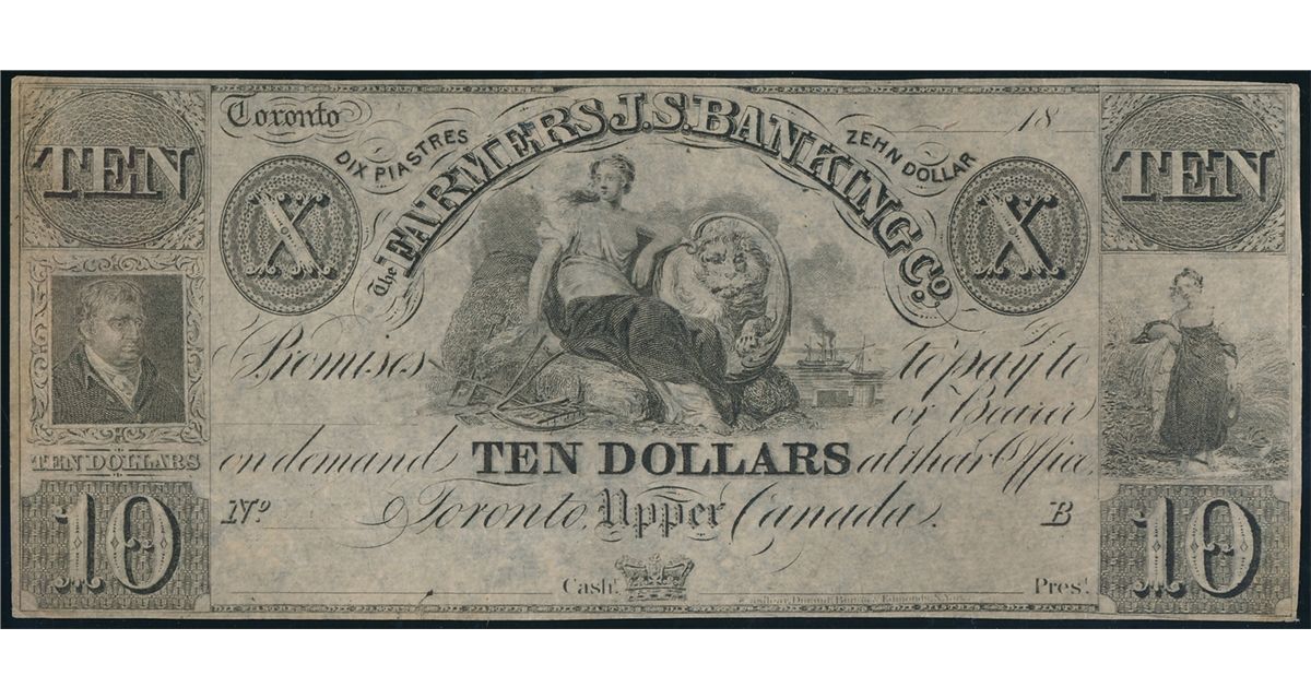 THE FARMER'S J.S. BANKING CO. $10.00. 18--. CH-285-10-02R. A Remainder. AU.