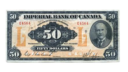 THE IMPERIAL BANK OF CANADA. $50.00. Nov. 1, 1923. CH-375-18-14. Howland, left. No. E4564/D. Good Fine.