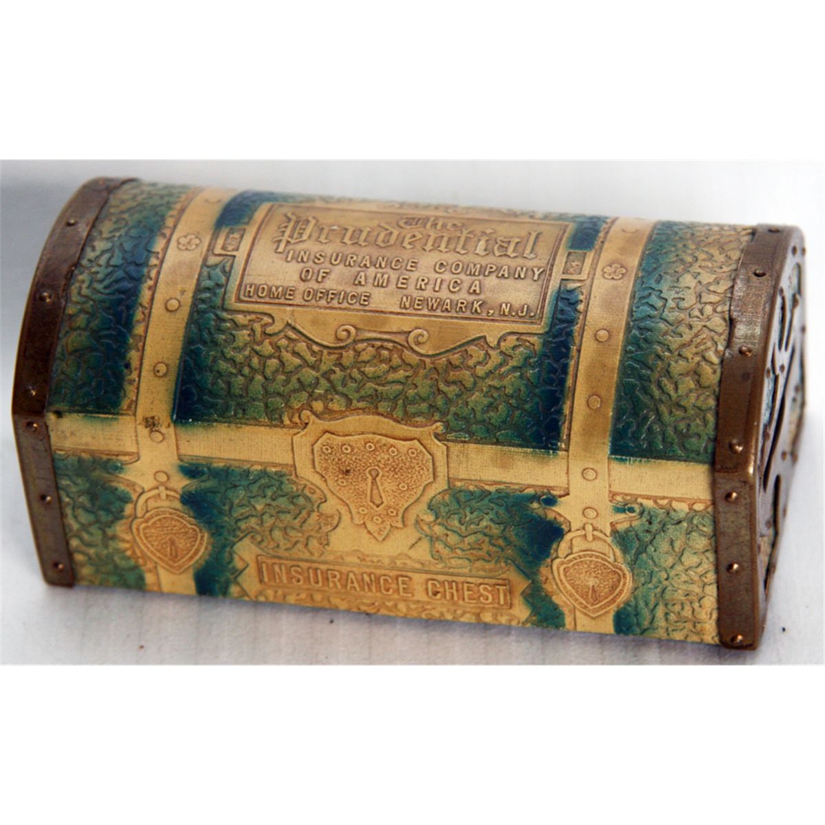 THE PRUDENTIAL INSURANCE COMPANY OF AMERICA, NEWARK, N.J. A treasure chest shaped bank. Coin slot on
