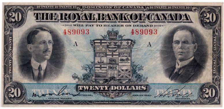 THE ROYAL BANK OF CANADA. $20.00. Jan. 3, 1927. CH-630-14-12. No. 489093/A. Wilson, left. PCGS graded Very Fine-25. PPQ.