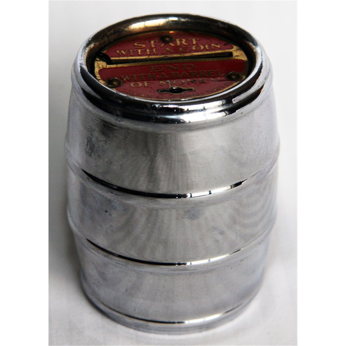 WESTERN SAVINGS & LOAN ASSOCIATION, WINNIPEG, CANADA. A barrel shaped, nickel plated bank. Coin slot